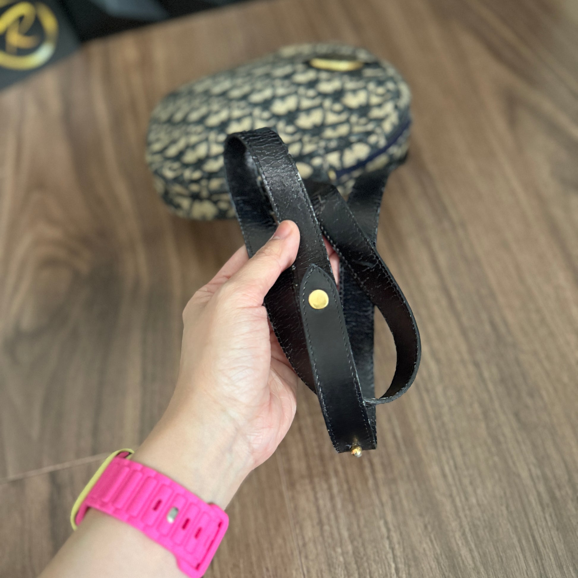 • Strap/Handle: Fair condition with signs of use, hairlines, and has been recolored.